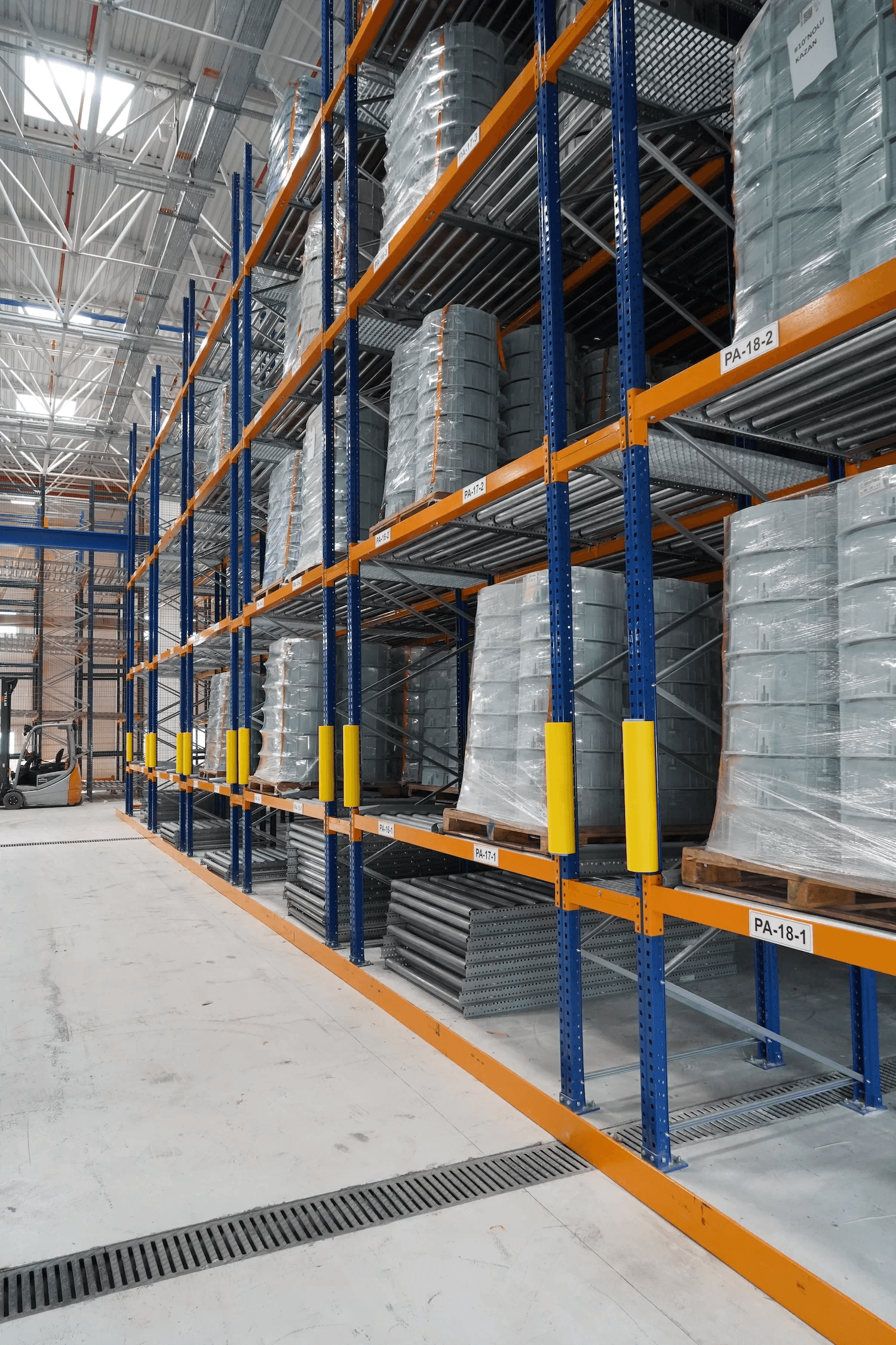 Paletli Kayar Raf Sistemi, yerçekimi kullanılarak eğimli rulolar üzerinden paletlerin kayarak ilerlediği dinamik depolama sistemidir. Sistemin temel prensibi, paletin bir noktadan yüklenip eğim sayesinde sistemin sonunda bulunan toplama noktasına kadar kendi kendine hareket etmesidir.